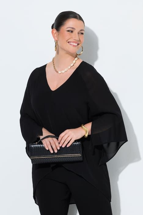 Moda za polnejše Bluza dvoslojna 3/4 rukavi V izrez plus velikost, xxl, Ulla Popken in Johann Popken (JP1880)