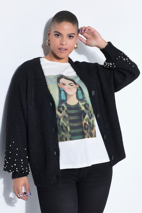 Kardigan šireg kroja s perlama